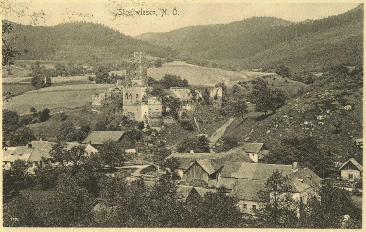 Streitwiesen ist die Stammburg eines Österreichischen Ministerialengeschlechtes und wird 1144 erstmalig urkundlich genannt. Ein Angehöriger aus dem Geschlechte der Herren von Stiefern kommt in den Besitz der Veste und nennt sich von da an nach diesem Besitz Ozo von Streitwiesen.